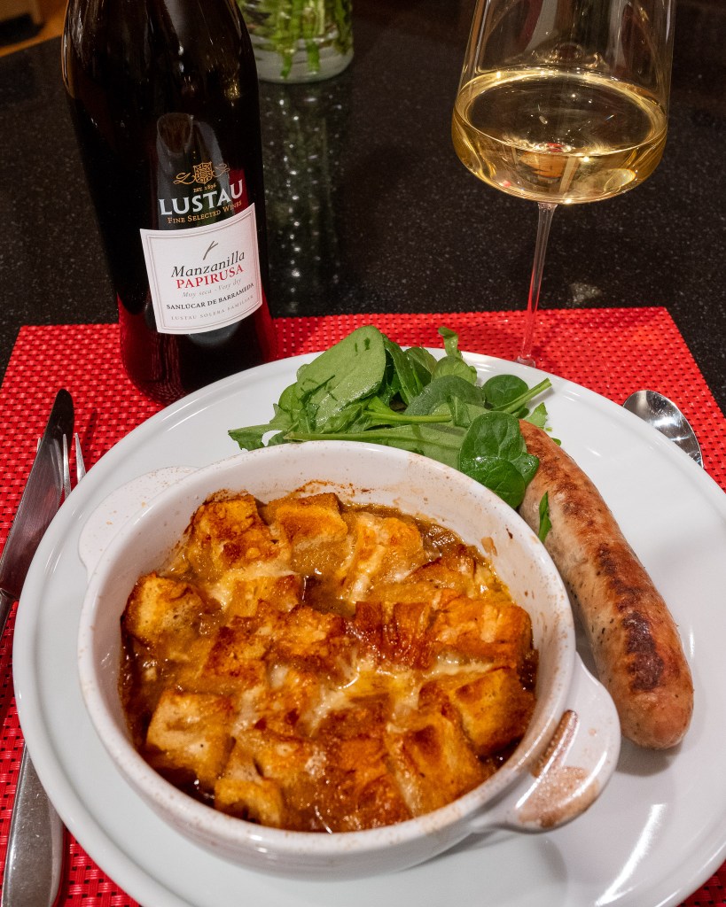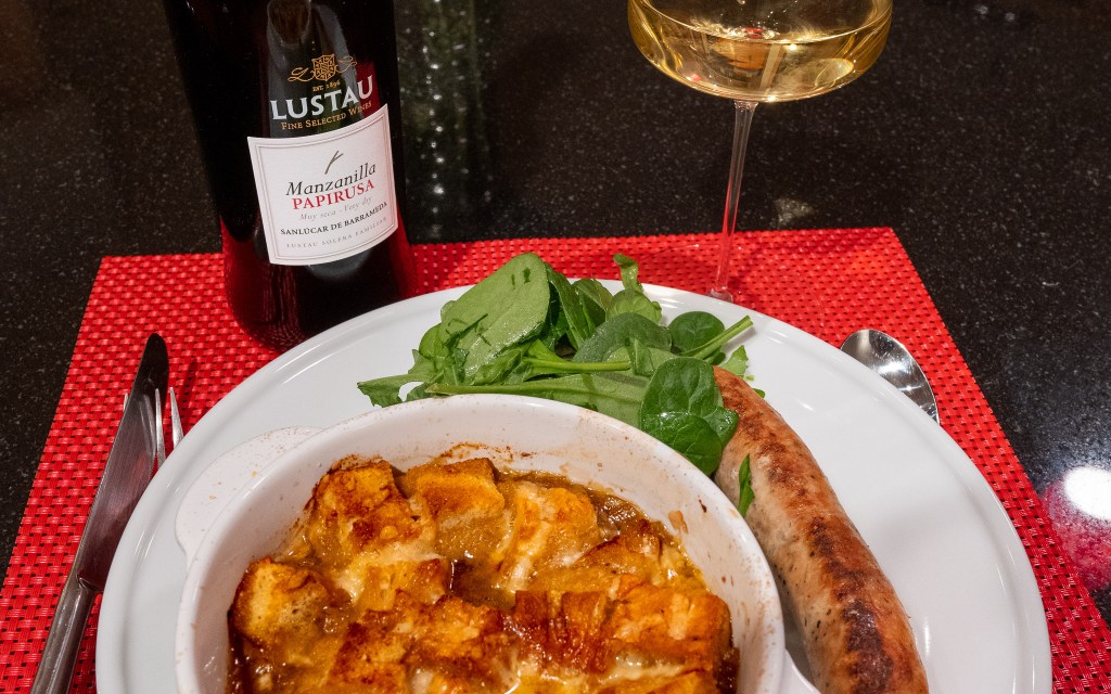 One of the key flavors present in a good bowl of French Onion Soup is thanks to dry Fino or Manzanilla Sherry and/or a dollop of Sherry vinegar. Why not spend a couple of hours slowly cooking down a pile of onions, simmering them in stock, finally topping with cheese? French Onion Soup is not difficult to make but it cannot be rushed. A cold winter afternoon is the perfect opportunity and it certainly is soup season! There are lots of recipes available online, New York Times Cooking has this classic version.