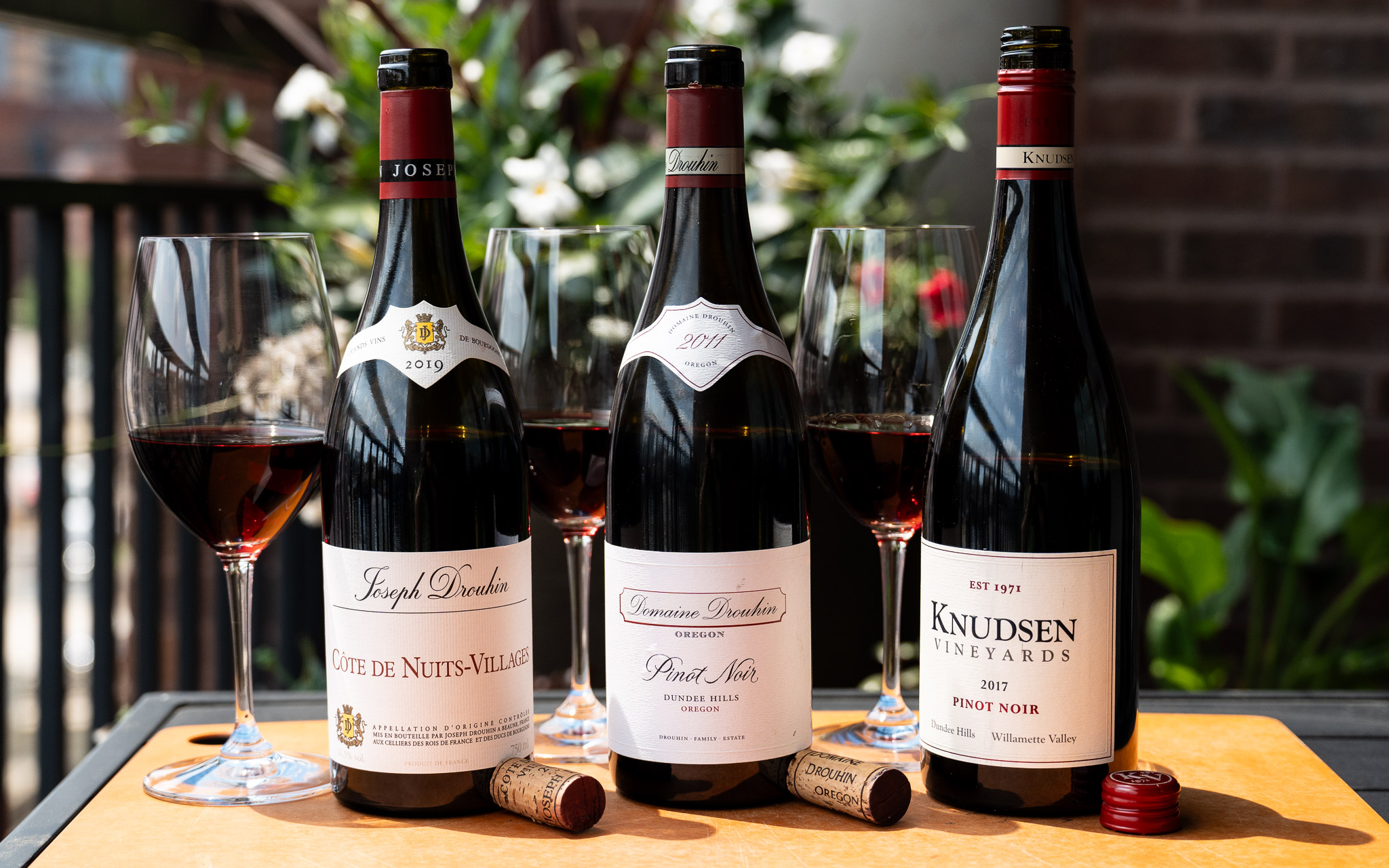 This is where the twists and turns start in my tasting of Domaine Drouhin. I knew I had purchased a Domaine Drouhin Pinot Noir some time ago, so I decided to pick up a similarly priced more recent vintage Domaine Joseph Drouhin Bourgogne example for a “new vs. old” world comparison. When I dug out the Domaine Drouhin wine, I found it was 2011 vintage; nice but difficult to compare against a 2019 French wine. I also wondered about an Oregon to Oregon comparison, so I looked for a good quality Dundee Hills wine I had on hand. How about Knudsen Vineyards? Voila! What started out as a “new world vs. old world” comparison turned into a look at a crazy sort-of vertical high quality Pinot Noir exploration. Still, I had fun and I hope you’ll give ANY of these wines a try!