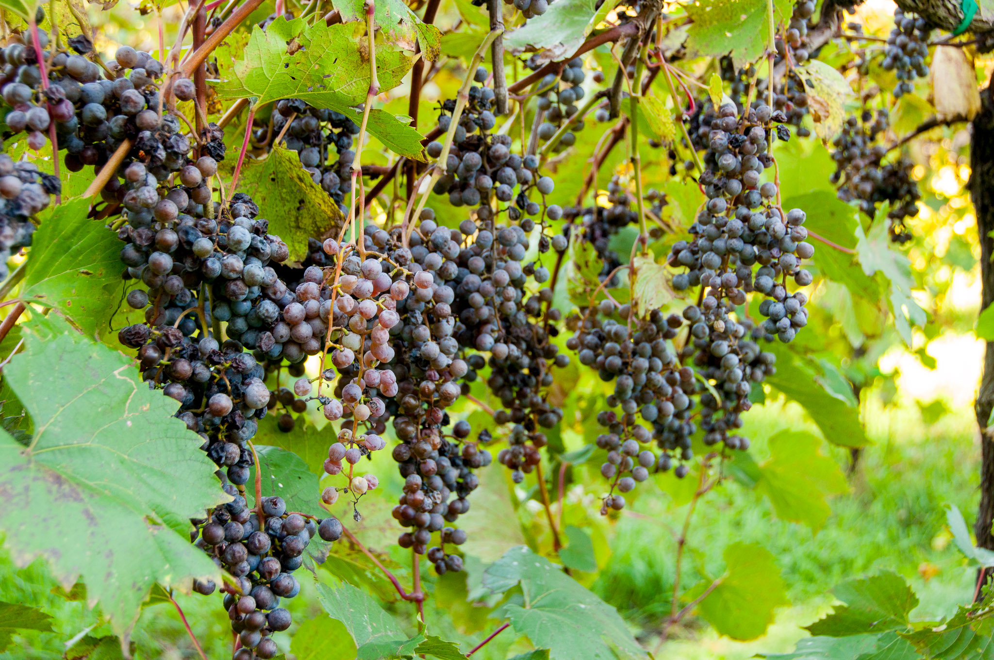 Vitis vinifera is the name of the grapevine species responsible for virtually all the wines we drink around the world. Cabernet Sauvignon is the same species as Sauvignon Blanc, they are just different cultivars, a bit like different color roses, or great danes vs. dachsunds. Wine from Vitus vinifera gives us great joy with intriguing aromas and flavors, and many wines even benefit from aging. But this vine is not without its problems. It thrives in a relatively narrow temperature band and is especially vulnerable to cold temperatures; Minnesota winters are just too cold, the vines will die. These vines are very sensitive to a wide variety of diseases and pests such as powdery mildew, downy mildew, phylloxera and others. Consequently, winegrowers typically use pesticides, herbicides and fungicides to keep the vines healthy and the grapes fault-free. As agriculture regulations become stricter regarding the use of synthetic chemicals, and customers are demanding more environmentally positive products, inherent disease resistance is becoming more important.
