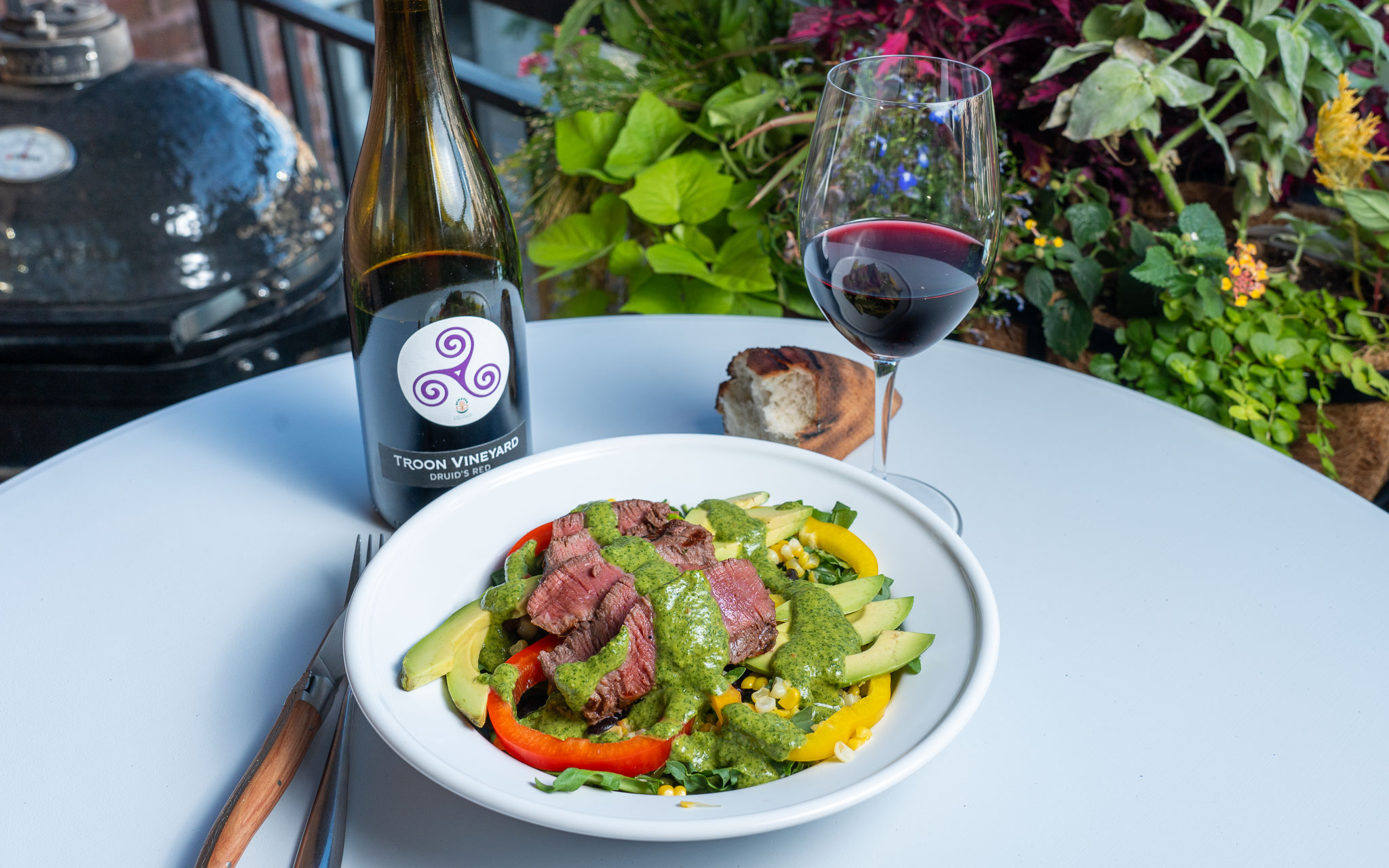 We enjoyed each of the Troon Druid wines at dinner over the summer. We served the Troon Druid’s White with pan-fried walleye and a quinoa tabbouleh salad. We paired the rosé with a vegetarian enchilada. The Druid’s red paired nicely with a steak topped cowboy caviar salad with a bold garlic-cilantro dressing. All three Druid’s wines feature lively acidity and bright flavors; perfectly suited for the dinner table.
