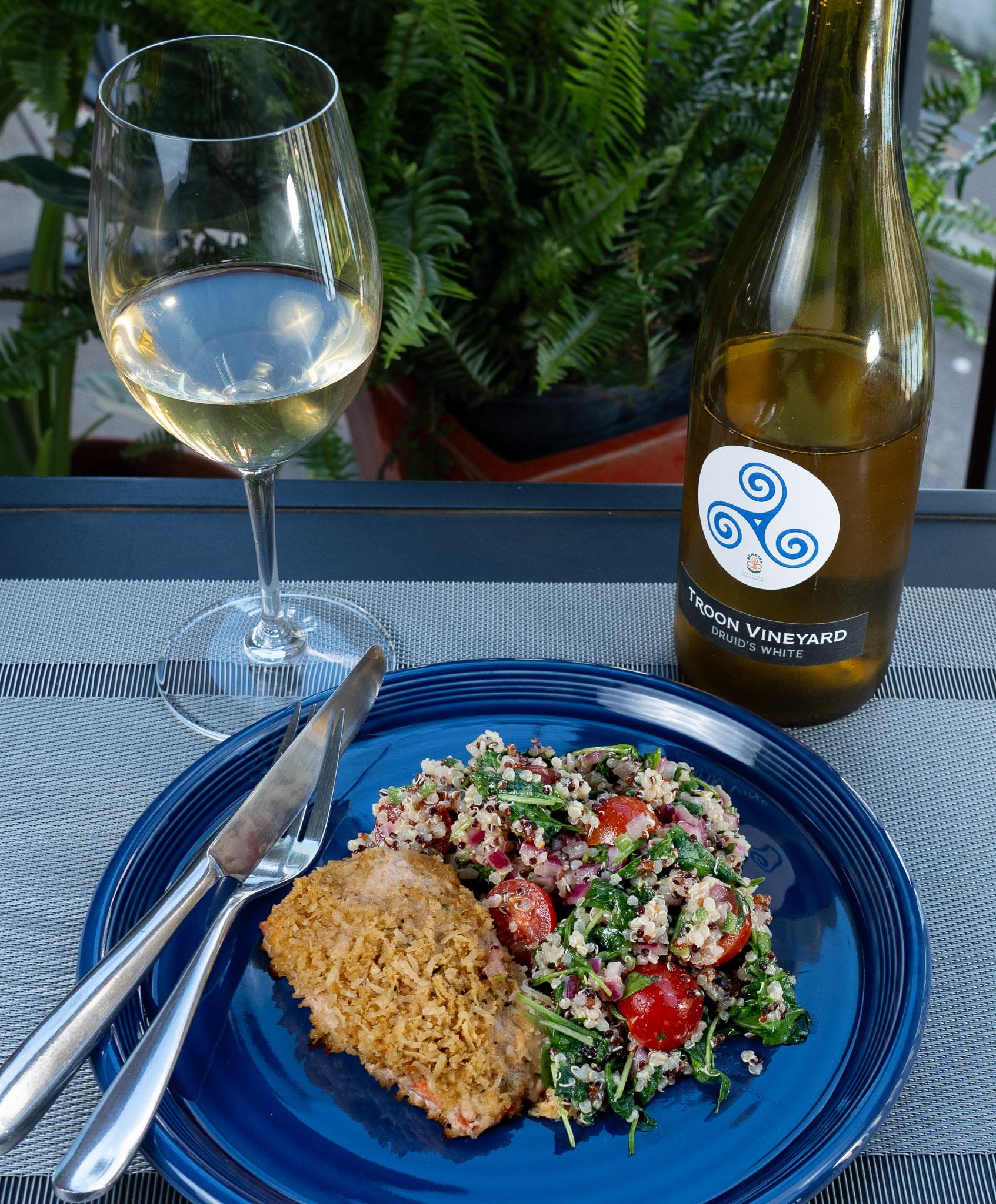 Many wineries have a set of everyday wines; Troon Vineyard has had a set of wines with the Druid title for many years. The difference with today’s Druid wines is that they are all 100% estate grown and produced to the same rigorous set of standards as their entire lineup. All three wines are blends of grapes; the particular blend varies according to the conditions in the vintage. Scanning the QR code on the back label (try it on the photo above) yields all the details one might want, much too much to squeeze onto a traditional back label! Troon’s Druid wines are designed for immediate enjoyment and attractively priced at $25 per bottle.