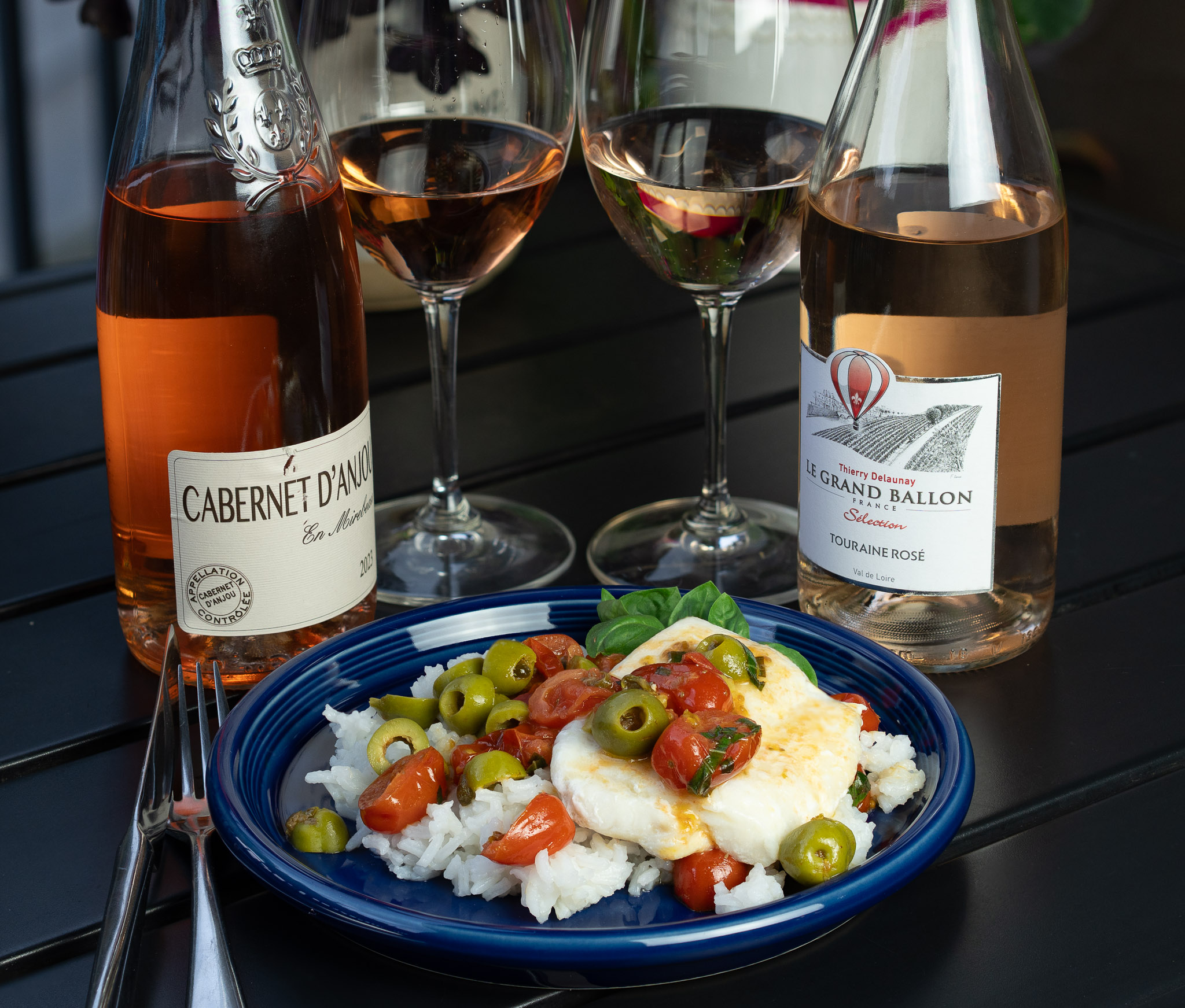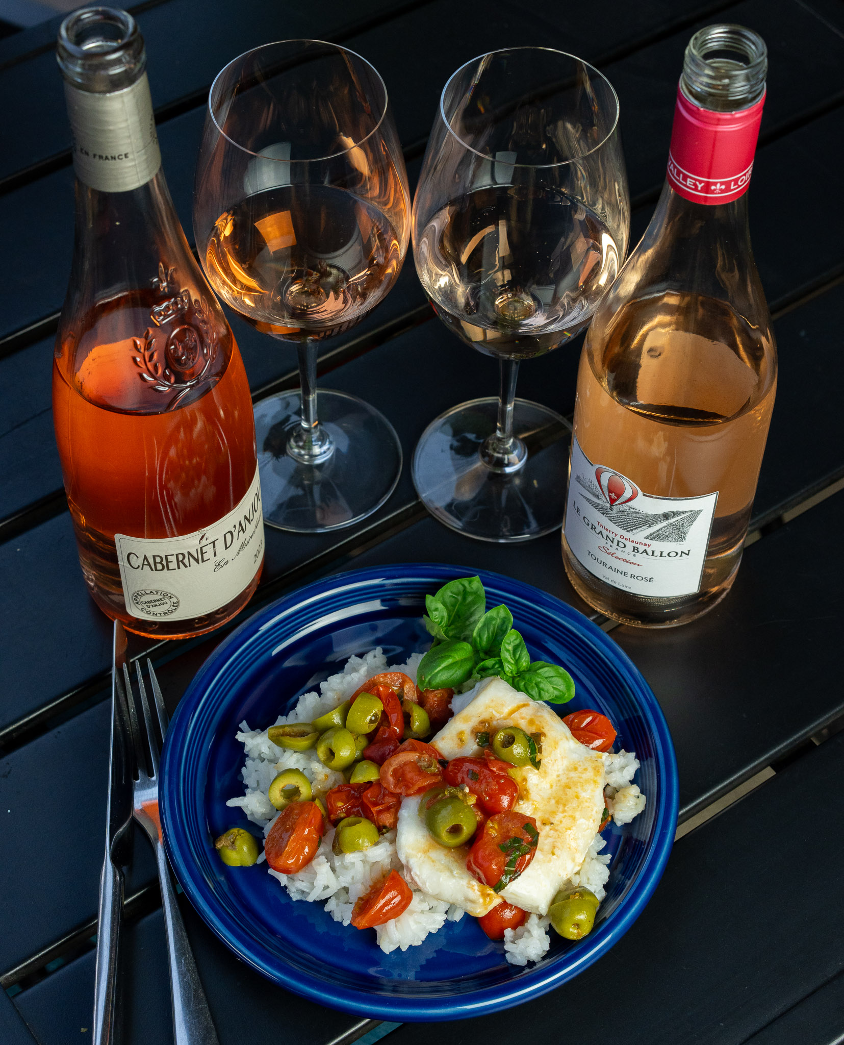 Such a great selection and introduction to Loire Valley roses! I’ve never seen a Cabernet d’Anjou. How interesting that a sweet rose would be the most popular one at the French grocery store. Love the pairing too with the colorful cod dish!