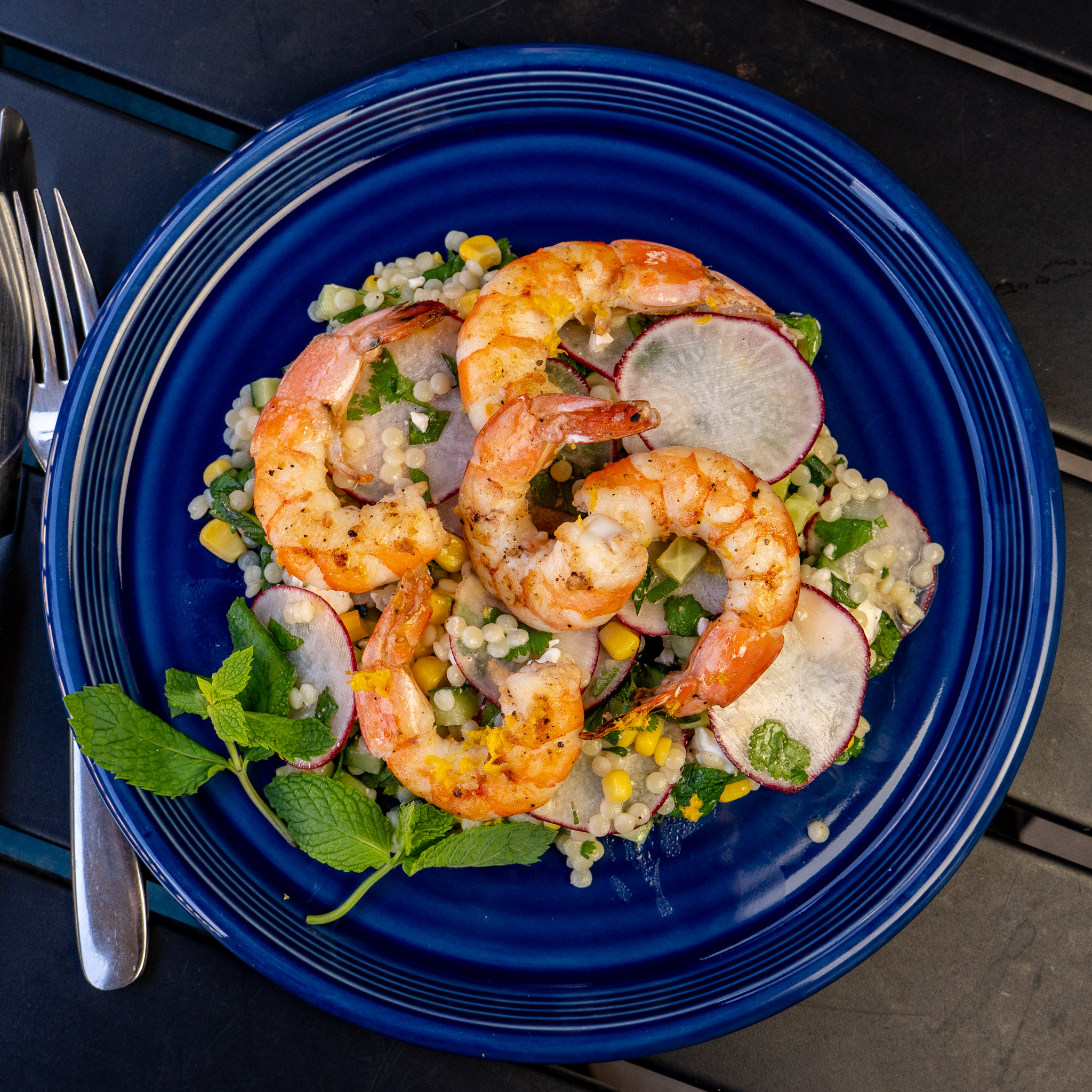 Pearl Couscous Salad with Shrimp and Feta – Paired with Muscadet