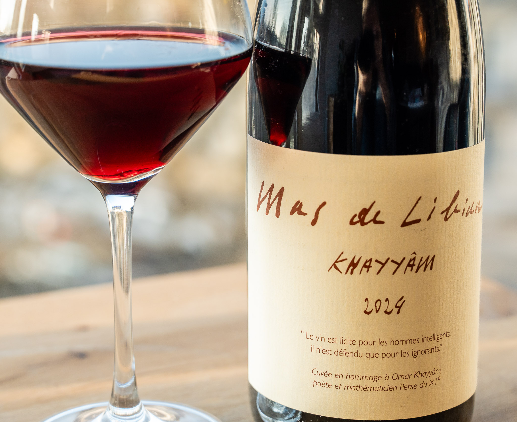 Mas de Libian notes the following about the name: “A vintage in homage to Omar Khayyam, Persian Muslim poet and mathematician of the 11th century, who wrote several hundred quatrains celebrating wine and women, and the philosophy of Carpe Diem.”(translated) You’ll note the quote on the wine label!